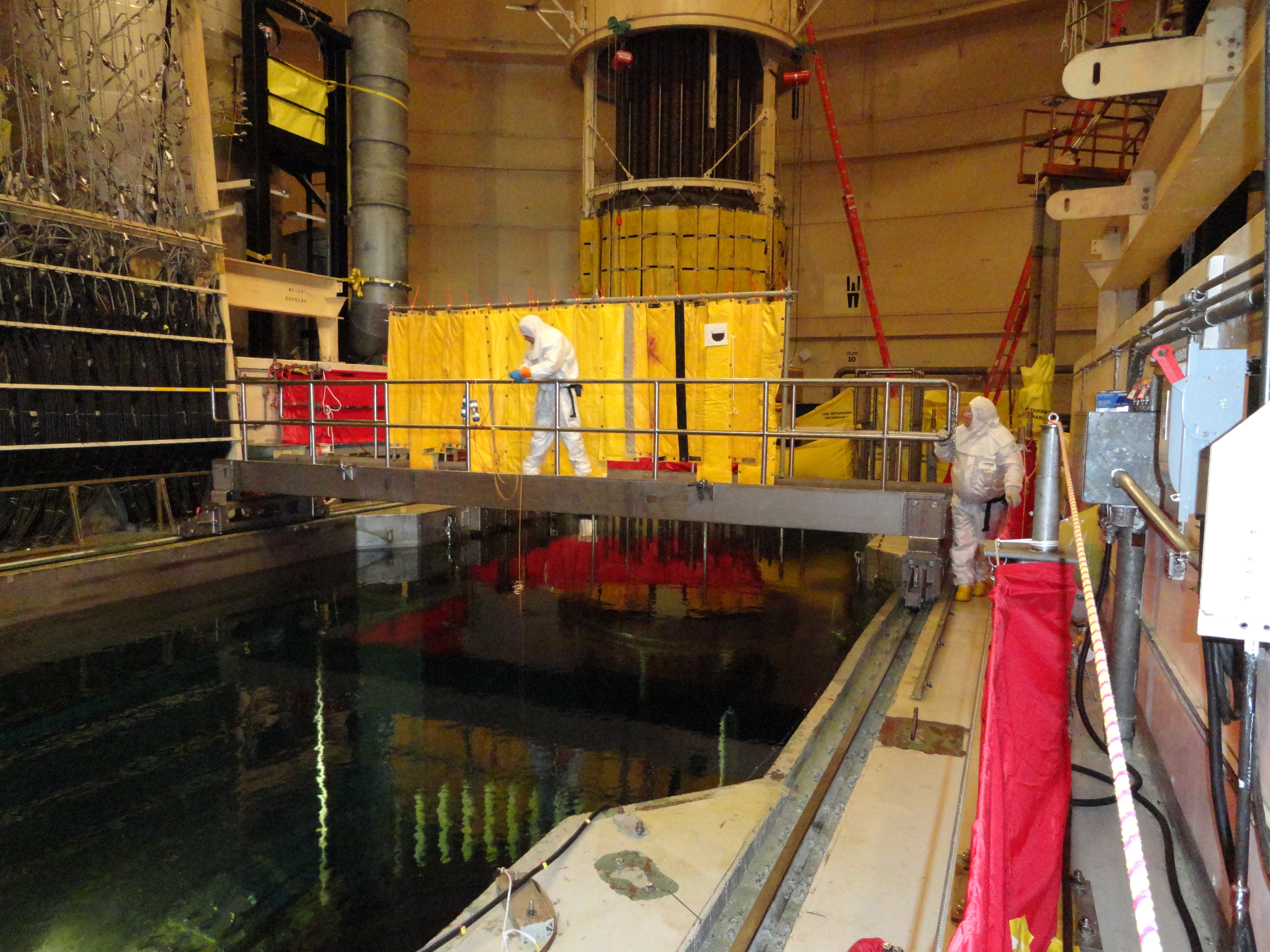 The titanium refuel cavity access bridge is used to aid in refueling efforts as well as reactor vessel inspection and maintenance. It allows additional access to the vessel area beyond what is traditionally available with existing fuel manipulators or larger auxiliary bridge assemblies.
