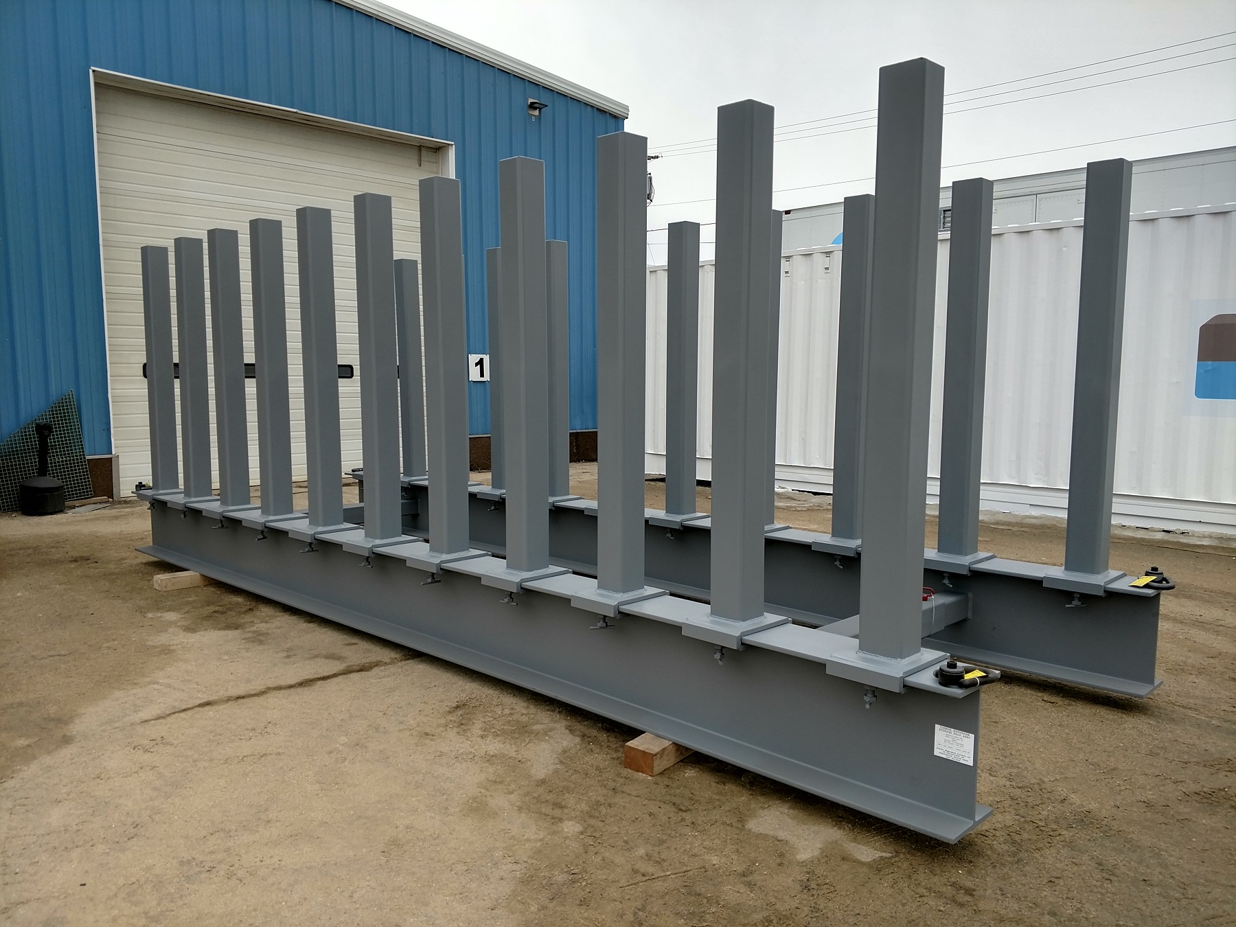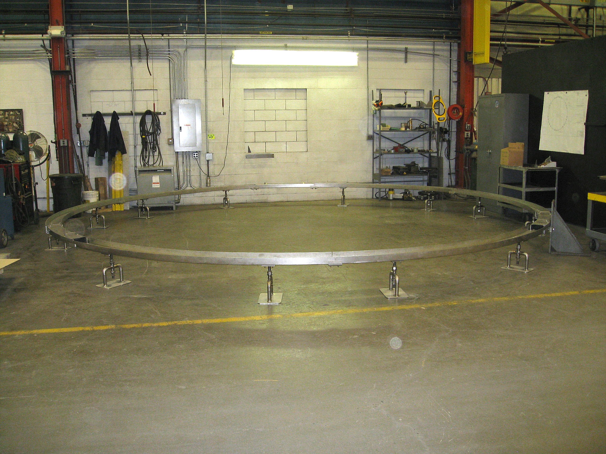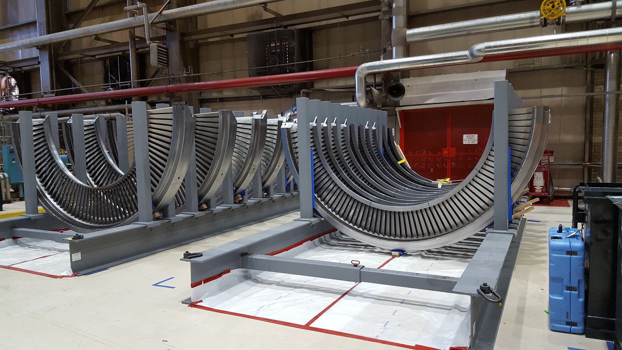 This is an adjustable turbine diaphragm storage rack. It is used to hold steam turbine diaphragm half sections during plant maintenance.